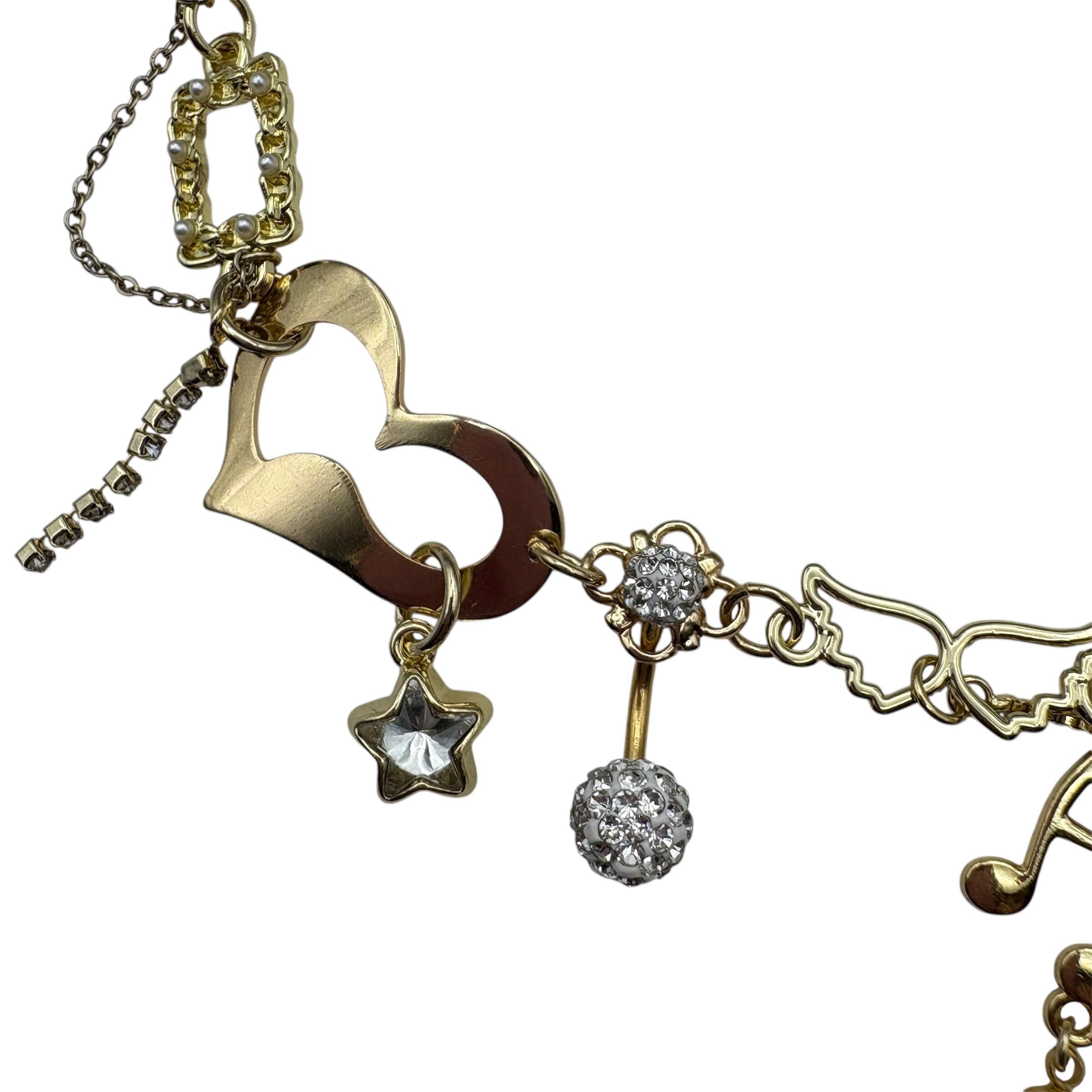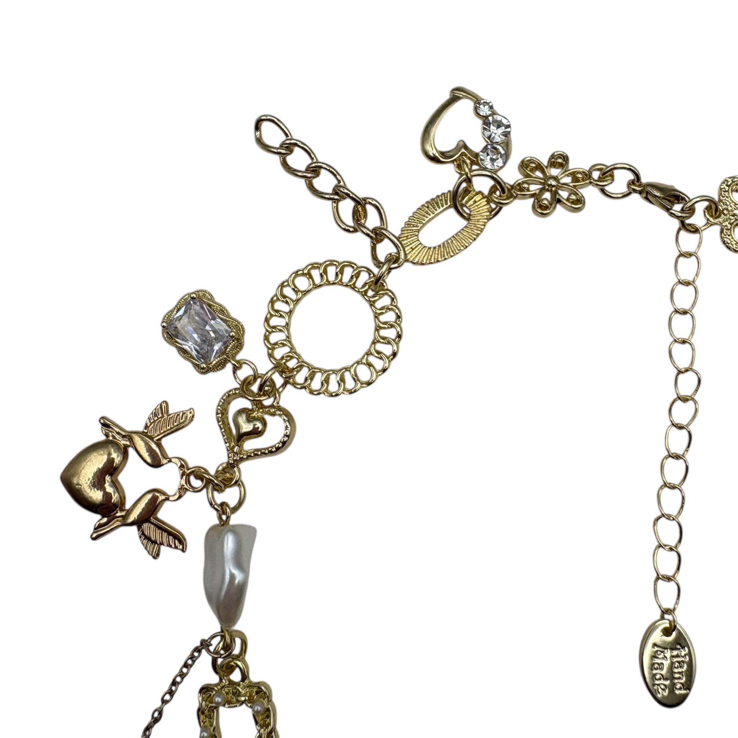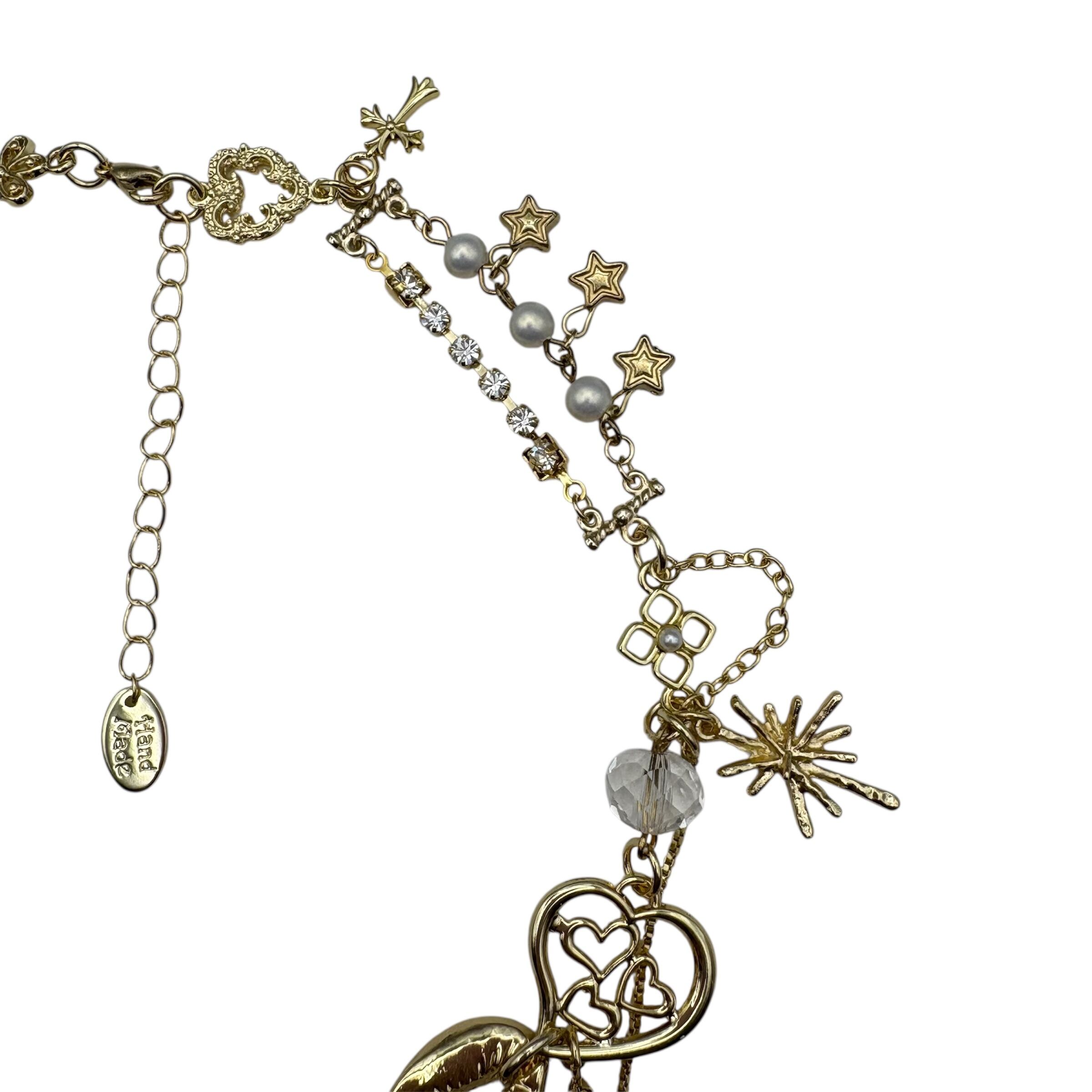 ゴールドのパーツをメインに繋げたゴージャスなネックレス。