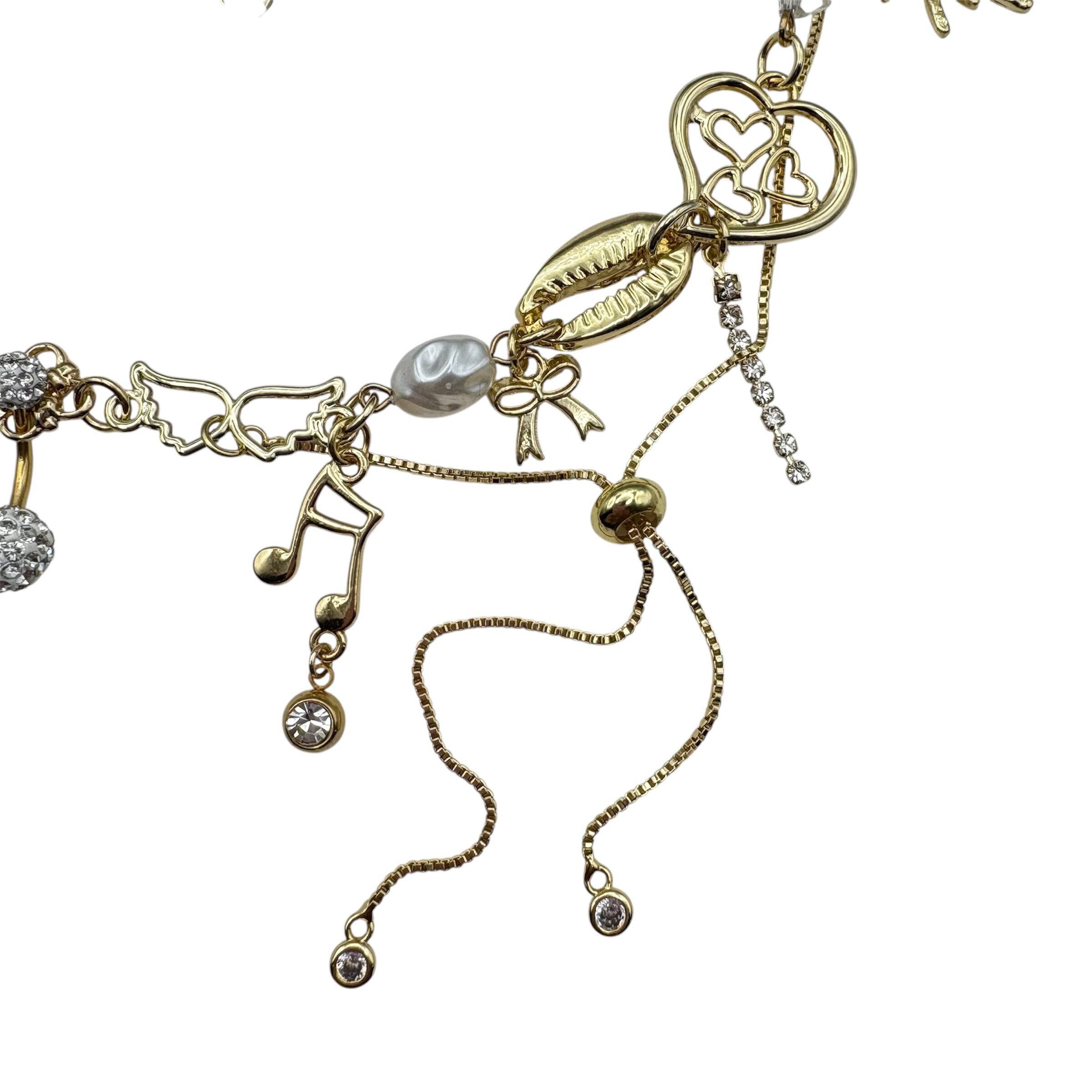 ハートや音符などの可愛いパーツやへそピアスなどユニークやチャームをたくさんつけたアイテム。