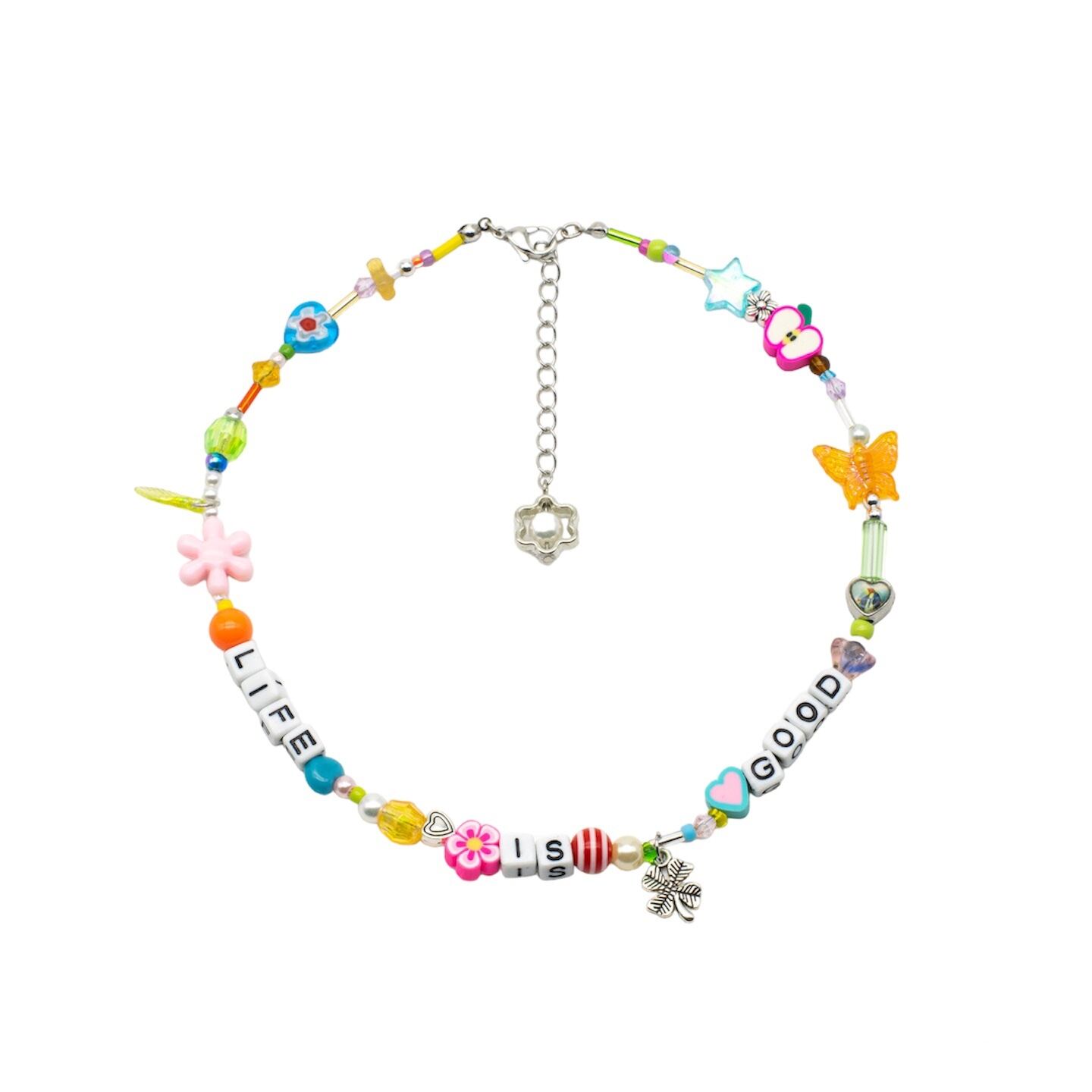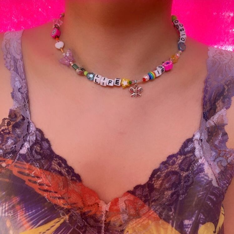 一つ一つがとても可愛いビーズやパーツを繋げた個性的なネックレス。