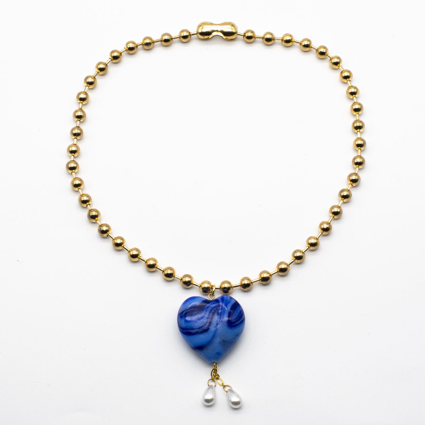 ゴールドの大きなボールチェーンをメインに、センターのハートがアクセントになったネックレス。 ハートから垂れるティアドロップ型パールもとても可愛い♡
