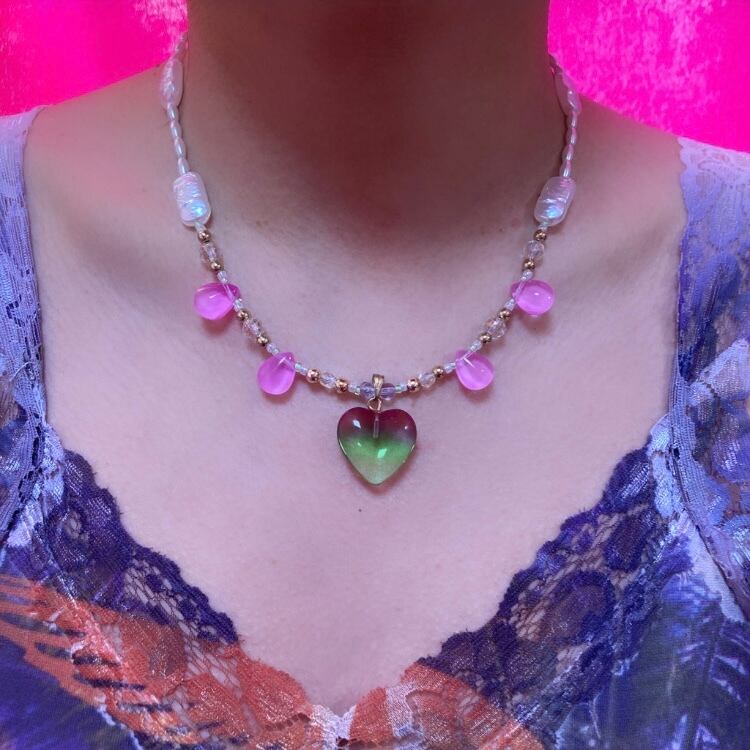 ピンクとグリーンのグラデーションハートが最高に可愛い♡ ピンクのティアドロップ がいいアクセントに。