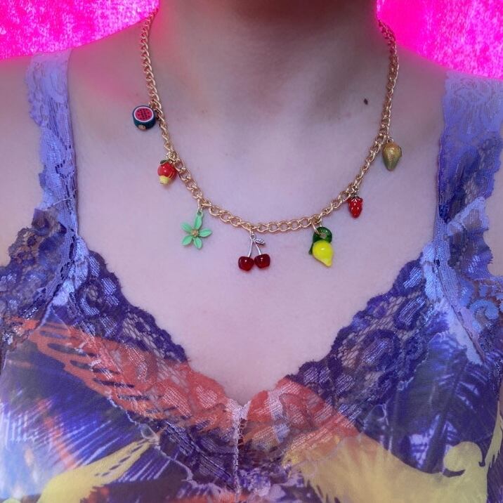 フルーティなカクテルをイメージし、所々についているフルーツたちを見つけてみて♪