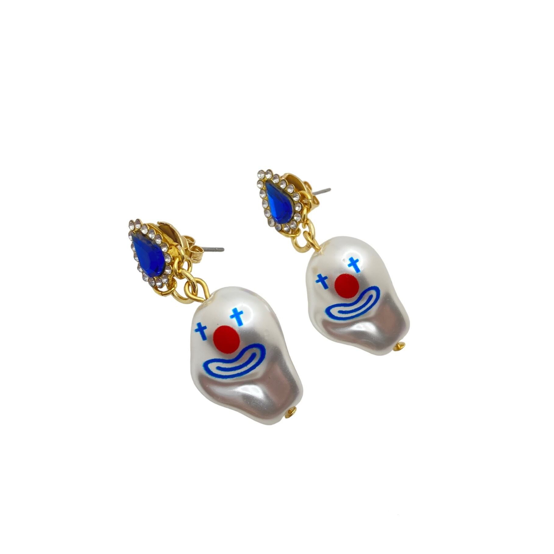 可愛い表情つきのパールとブルーのストーンが可愛いピアス。