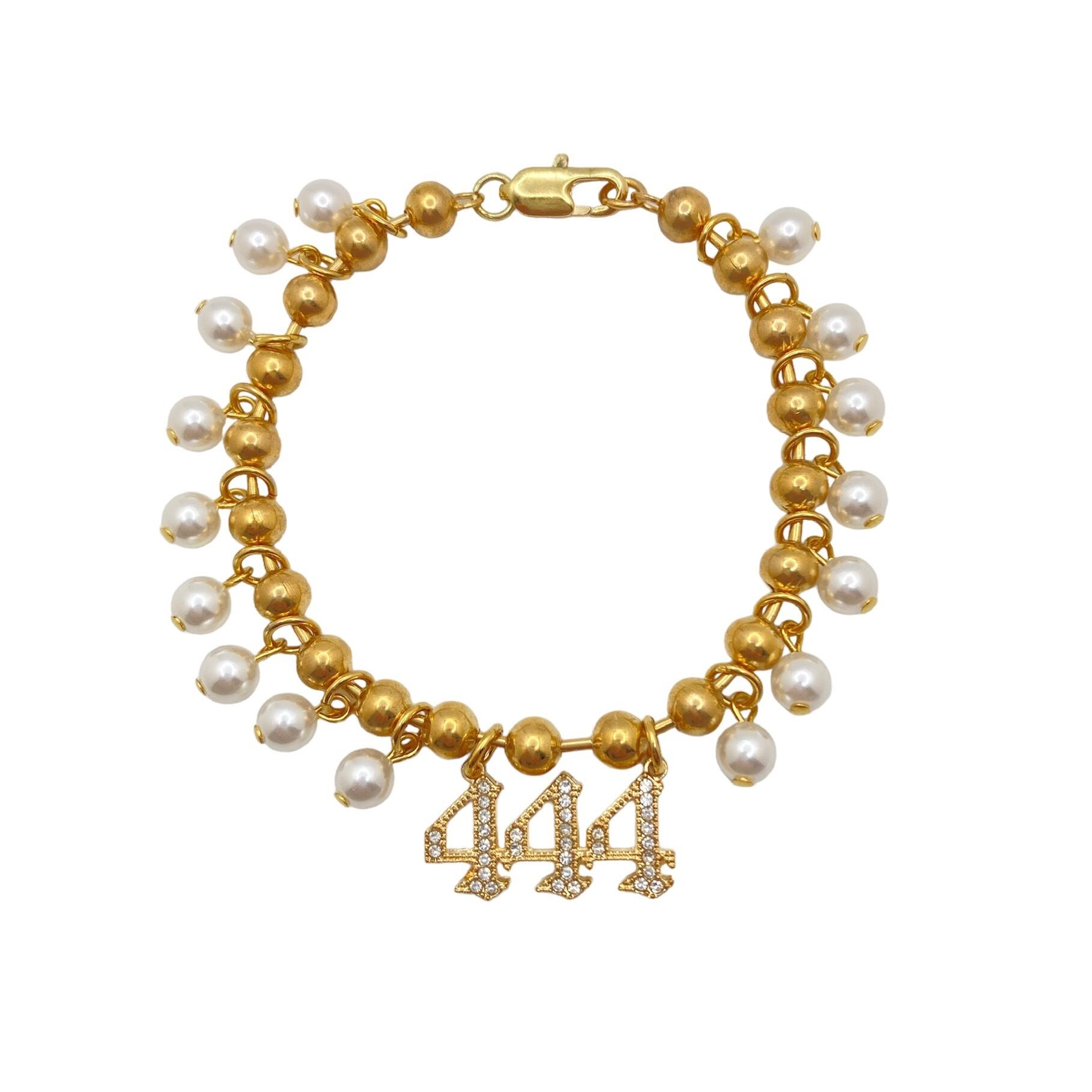 ゴールドのボールチェーンをメインに、パールがたくさん並んだブレスレット。